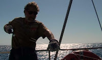 Once when leaving Cocos Keeling with a similar fishing rig we hooked a two or three hundred kilo black marlin. In those days Banyandah had two masts and we attached the trolling line to the smaller mast's support wires, but stopped doing that after the black marlin nearly pulled it over. These days we attach the trolling gear to our new stout tower.